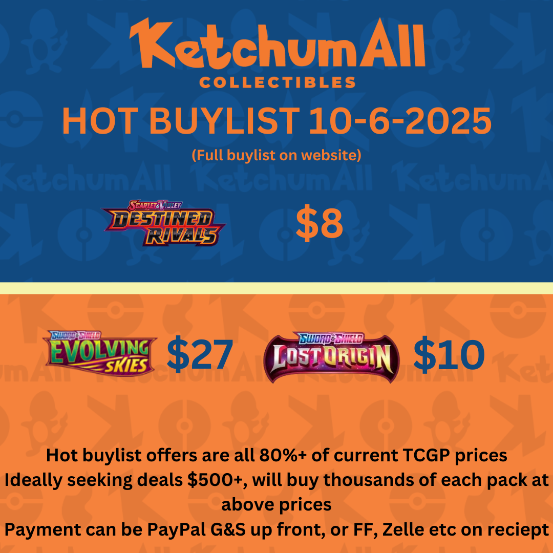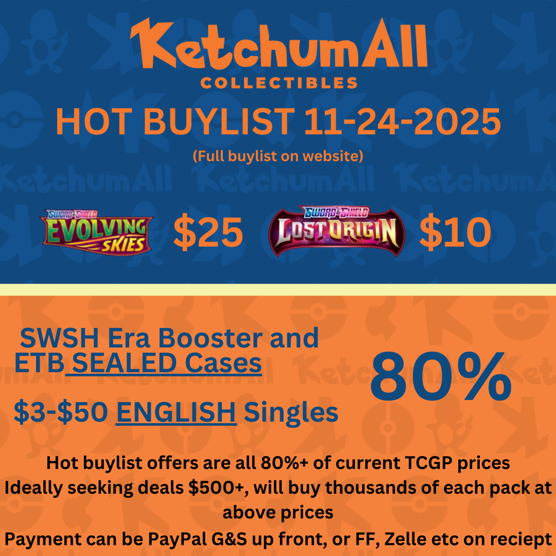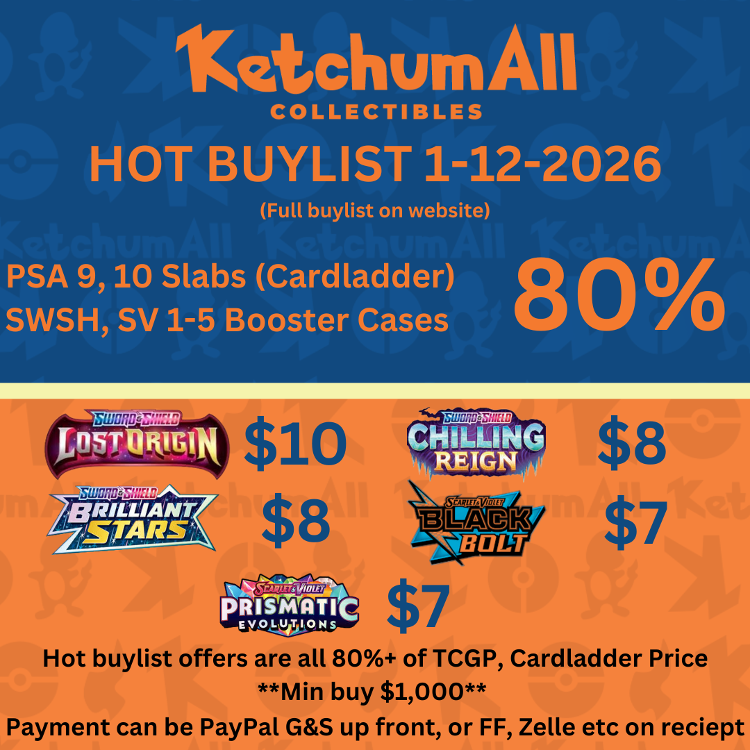 Email/contact/DM to sell today! New promo buylist will be featured sporadically to the right (if blank, not active). Buying select sealed promos at ~100%+ of tcgp NM market price!
